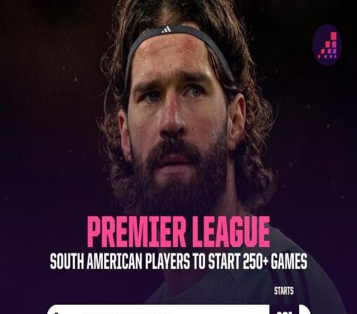 英超第26輪,利物浦客場對陣桑德蘭,利物浦門將阿利松迎來英超生涯第250次出場,成為第五位達成這一里程碑的南美...