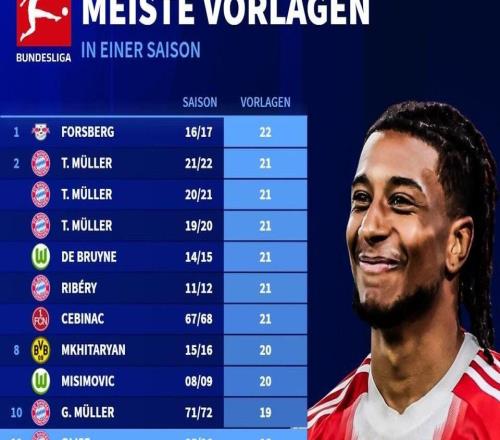 北京時間2月21日,來自德轉(zhuǎn)的統(tǒng)計指出,拜仁慕尼黑邊鋒奧利塞距離德甲歷史單賽季的助攻數(shù)紀(jì)錄還有4次之遙。按照...