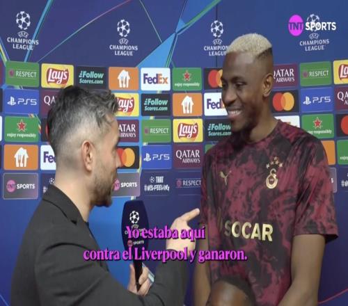 歐冠淘汰賽附加賽首回合,加拉塔薩雷主場5-2戰勝尤文圖斯,加拉塔薩雷前鋒奧斯梅恩賽后接受了TNT體育墨西哥頻道...