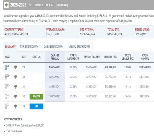 布倫森提前4年索要頂薪美記暗示他被坑降薪1.13億33歲將陷泥沼