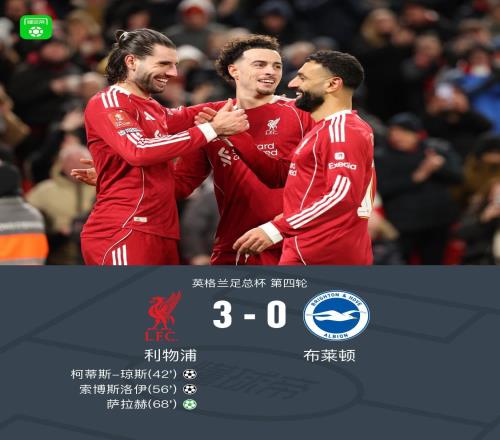足總杯利物浦30布萊頓晉級(jí),薩拉赫傳射,索博、瓊斯建功
