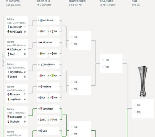 歐協聯18決賽對陣:水晶宮vs拉納卡,佛羅倫薩vs琴斯托霍瓦