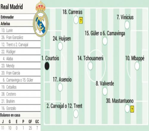阿斯報(bào)預(yù)測(cè)皇馬對(duì)皇家社會(huì)的首發(fā)陣容維尼修斯回歸首發(fā)中衛(wèi)為阿森西奧和赫伊森_西甲直播