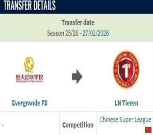 北京時間2月27日,德轉更新,遼寧鐵人約100萬人民幣簽下恒大足校17歲后衛張洪福。張洪福現年17歲,司職后衛,在2025...
