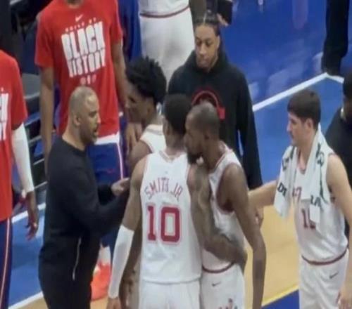 騎士終于全陣容出場,大破籃網。之前首發:米球188,哈登196,梅里爾193,泰森198,加雷特·阿倫206。今天:米球188,哈登19...