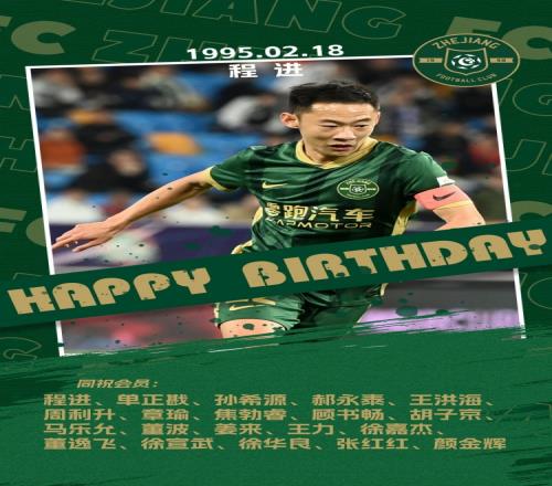 2月18日,程進慶祝他的31歲生日,這時候浙江隊不失時機地送上了祝福,順便也照顧了一下那些同樣在今天過生日的俱...