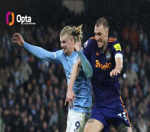 哈蘭德對陣紐卡贏下12次對抗,為個人在五大聯賽單場最高數據