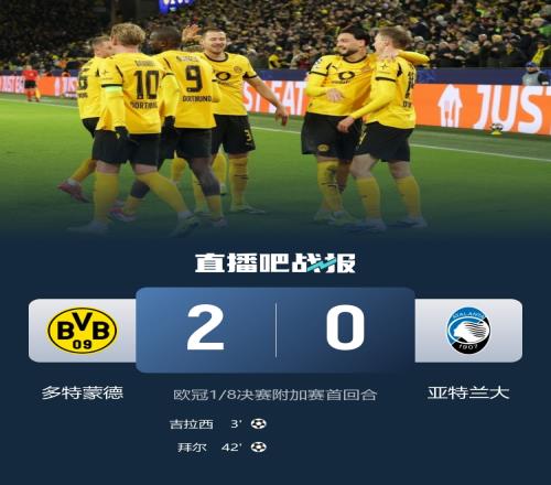 多特蒙德戰勝亞特蘭大吉拉西傳射助攻拜爾破門_歐冠直播