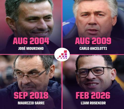 執(zhí)教切爾西前四場英超全勝,羅塞尼爾成隊(duì)史正式主帥第四人