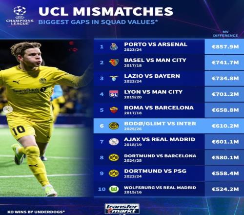 閃耀與國米身價(jià)差距6.1億歐成歐冠歷史第六大逆襲佳話阿森納霸主地位不可動(dòng)搖_意甲直播