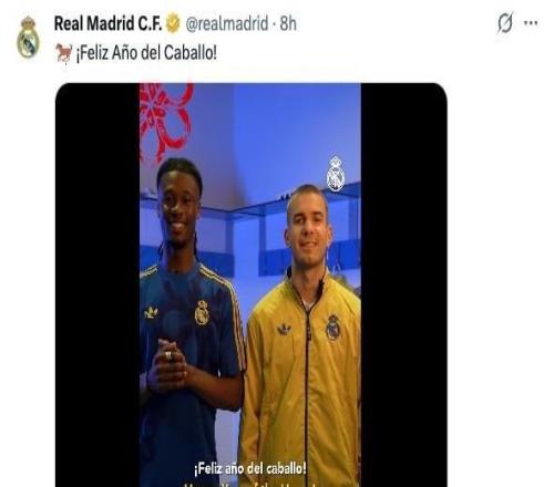 皇馬曬新年祝福視頻,卡馬文加特意用中文說“新春快樂”