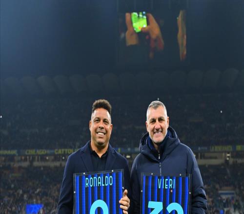 羅納爾多和維埃里親臨圣西羅,并獲贈國米紀念球衣