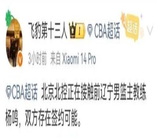 自從楊鳴在遼寧男籃卸任了主教練的職務后,又開始進行賽事解說。從在遼寧男籃執(zhí)教的履歷來看,楊鳴的執(zhí)教能力還是非常不錯的,帶隊完成過三連冠。遼寧男籃本賽季的表現(xiàn)有些糟糕,作為主教練的楊鳴雖然難辭其咎,但更重要的是球隊的陣容問題比較大。在媒體人楊毅透露出有球隊在接觸楊鳴的消息后,這件事有了最新進展。據(jù)知情人透露,接觸楊鳴的球隊是北控男籃,雙方存在簽約的可能性。