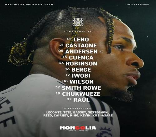 富勒姆首發:1-萊諾、21-卡斯塔涅、5-安諾生、15-昆卡、33-羅賓遜、16-貝格、17-伊沃比、8-哈里-威爾遜、32-史密斯-羅、19-丘庫埃澤、7-勞爾-希門尼斯