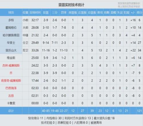 亞歷山大投籃16中11,三分2中1,罰球13中11,砍下34分5籃板13助攻2搶斷1蓋帽4失誤,正負值+22全場最高。約基奇9投6中,三分2中1,罰球4中3,拿到16分7籃板8助攻1搶斷6失誤,正負值-7。MVP之爭,亞歷山大勝出了。