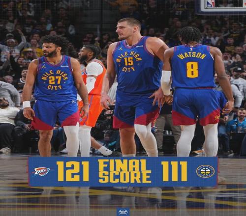 16分的分差并不算太大,但是以約老師和穆雷今天的狀態,掘金也很難翻盤。第四節還剩3分鐘,雷霆依然領先17分,掘金換下主力球員。全場結束,掘金111-121不敵雷霆。剛剛入選全明星的賈馬爾-穆雷16中4,小哈達威6中0。