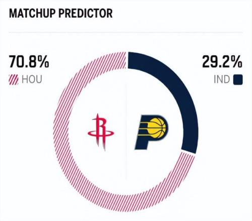 賽前,美媒ESPN對本場比賽進(jìn)行了勝率預(yù)測,火箭隊(duì)勝率高達(dá)70.8% ,步行者勝率則僅有29.2% ,還是不被看好。