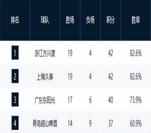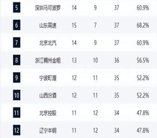 青島隊強勢崛起,主場擊敗廣州隊后以14勝9負升至第4,成為本賽季最大黑馬之一。與之同戰績的深圳隊則在加時賽惜敗,錯失反超良機,兩隊纏斗激烈,第4至第8名的競爭已進入白熱化。