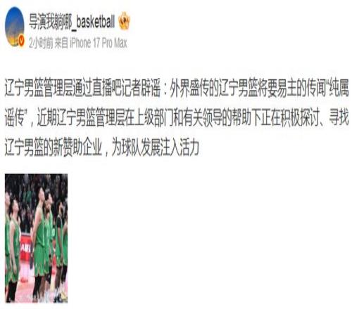 至于有關“遼籃易主”的謠言,遼籃俱樂部工作人員明確辟謠,他表示近期遼寧男籃管理層在上級部門和有關領導幫助下,正在積極探討、尋找新的贊助企業,為球隊發展注入活力。