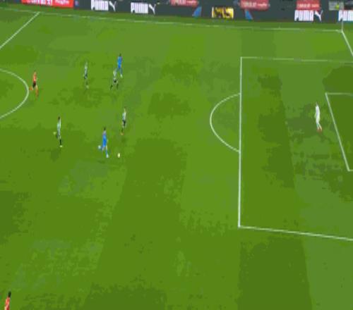 第16分鐘,不應該,盧克曼單刀低射偏出