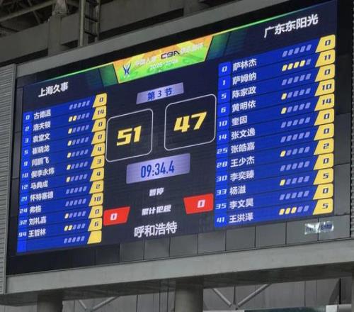 下半場,上海搶開局,王哲林和洛夫頓在內線連續打中,反觀廣東命中率有所下降,分差瞬間被拉開至13分。由于王少杰第一節鼻子出血受傷,廣東第三節開局打五小陣容,黃明依來鎮守內線,明顯無法抵擋上海內線的進攻,王哲林和洛夫頓連續強吃黃明依成功造犯。如果不是奎因和薩姆納苦苦追分,分差會更大。