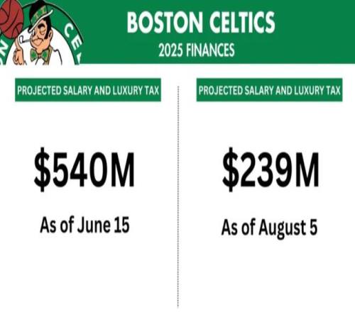 當然,騎士隊這邊是補強了陣容實力,而凱爾特人管理層則展現了截然不同的操作思路,從去年夏天休賽期至今,他們通過一系列精妙操作,成功將總薪資壓到奢侈稅線之下,減少了高達約3.3億美元的薪資和奢侈稅支出,真是讓人嘆為觀止。