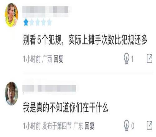 要知道,俱樂部杯的比賽強度遠不如常規賽,即便在這樣的情況下,趙巖昊的狀態都如此低迷,更加令人唏噓的是,趙巖昊這場比賽不僅狀態差,場上的態度也是一言難盡,有球迷表示:“別看5個犯規,實際上攤手次數比犯規還多。”