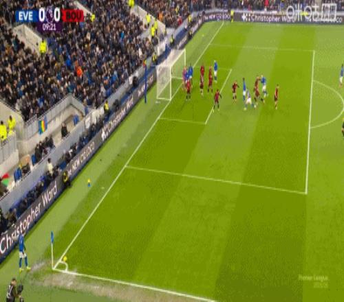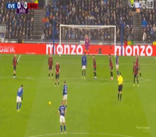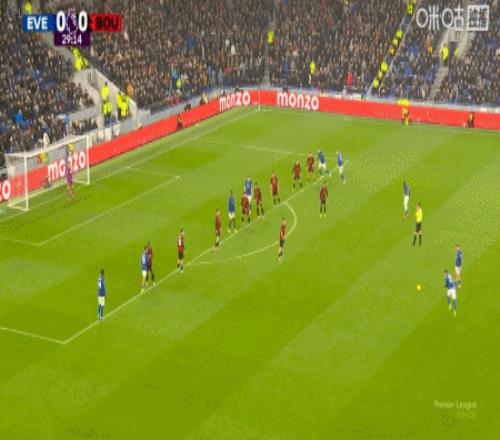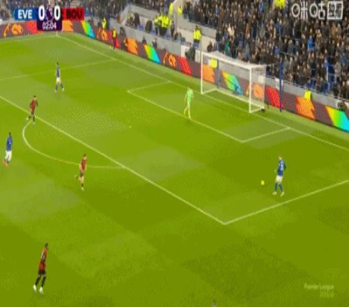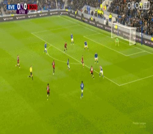 第42分鐘,拉揚送點,恩迪亞耶主罰點球命中,埃弗頓1-0伯恩茅斯