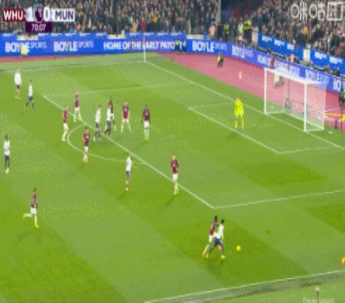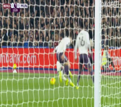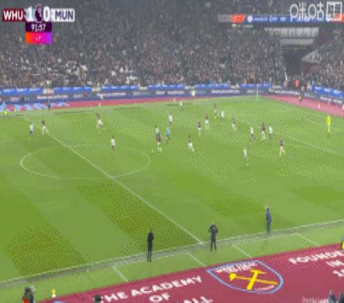 第90+5分鐘,謝什科禁區腳后跟破門,曼聯1-1扳平西漢姆聯