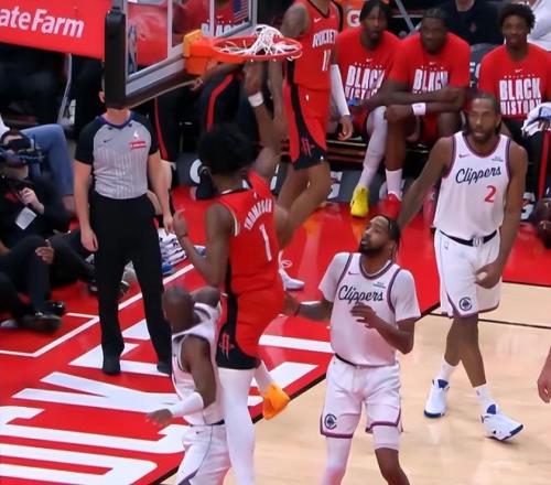 次節(jié)回來,謝潑德界外飛身救球,芬尼-史密斯釘板大帽米勒后再助攻阿門反擊完成暴扣。鄧恩搶斷一條龍過掉防守扣空籃,意外被籃筐帽下,鎖定今日五大囧,隨后又接連完成兩次搶斷,但最終都沒有轉(zhuǎn)化為得分,兩邊打得確實(shí)都辣眼睛。謝潑德切球被吹犯規(guī),火箭挑戰(zhàn)成功取消犯規(guī)還拿到球權(quán),這一波賺大了。大洛和小瓊斯連中三分,快船反超比分,杜蘭特和伊森立馬兩記三分回應(yīng),大洛極限救球,快船反擊倫納德底角再中三分,快船反超4分。阿門強(qiáng)突造殺傷后再中三分,半場戰(zhàn)罷,火箭52-51領(lǐng)先快船。
