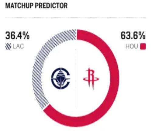 賽前,美媒ESPN對本場比賽進(jìn)行了勝率預(yù)測,火箭隊(duì)勝率高達(dá)63.8%,快船勝率則僅有36.2% ,差距還挺明顯。