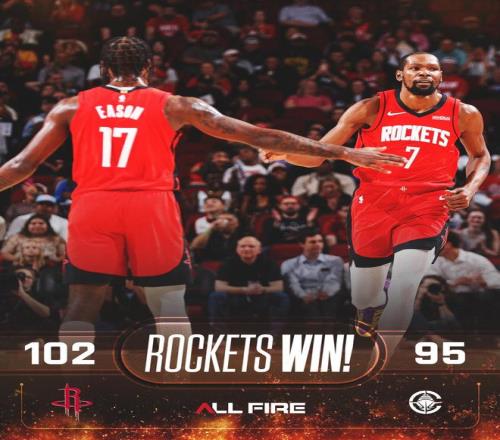 火箭隊,謝潑德10中6,三分球6中4得到了16分6板4助,末節獨得8分成為取勝功臣。阿門10中6得到了16分6板1助、小賈巴里史密斯11中4貢獻了13分10板3助、伊森10中2,三分球6中2得到6分5板1助、芬尼-史密斯3分1板2助、卡佩拉3板2帽。