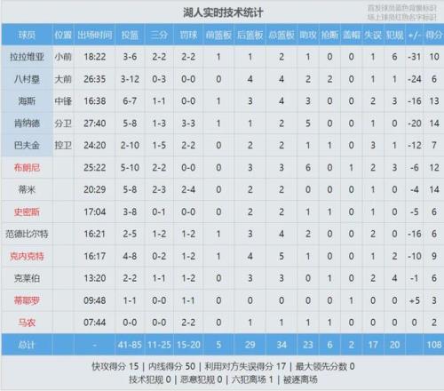 湖人首發:科比-巴夫金、肯納德、拉拉維亞、八村塁、海斯。馬刺首發:福克斯、卡斯爾、尚帕尼、瓦塞爾、文班亞馬。湖人把最后一份正式合同給了科比-巴夫金,本賽季他主要在發展聯盟征戰,場均得到24.7分4.4板3.6助2.6失誤。