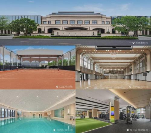 據介紹,這里的場地配置均與國際接軌:室內外雙泳池采用與水立方同源的奧運級設備,配備獨立的干蒸房與濕蒸房;網球場為廣州首批法網規格的紅土賽場,隔壁是澳網主題配色的硬地網球場。還設室內虛擬高爾夫、三合一功能影音室等文娛設施,及島尖的標準足球場。