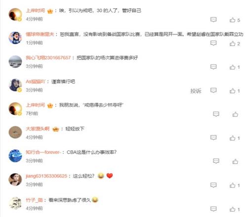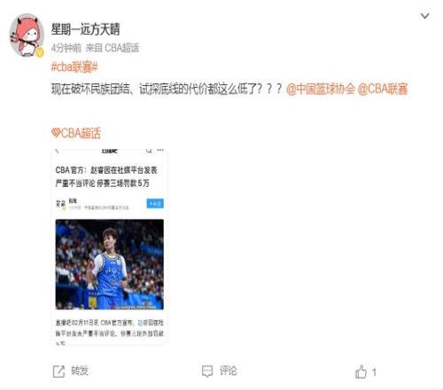 不少的球迷都在評論區(qū)表示這個處罰太輕了,輕拿輕放,多國家隊(duì)的比賽絲毫沒有影響,實(shí)際上該處罰他不能出戰(zhàn)中國男籃的比賽才對。