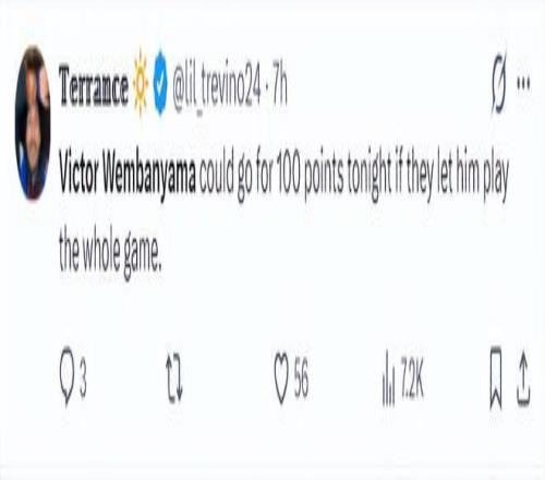 美國媒體認為文班亞馬就是當代的張伯倫,而且覺得只要文班亞馬在這場比賽能打滿全場甚至可以完成張伯倫那單場100分大關(guān)的蓋世紀錄。