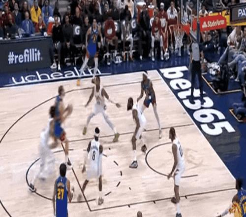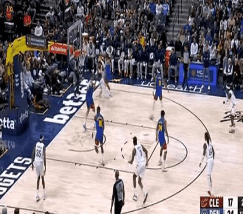 哈登試圖找約基奇擋拆,約基奇目送,小哈達維切掉哈登給加雷特·阿倫的傳球,逼得哈登自己撤步,射中全場第一個三分。