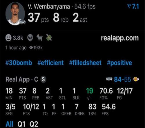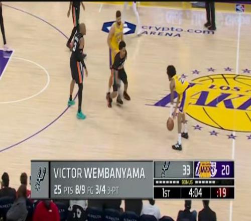 文班亞馬脫下袈裟大開殺戒,直接就把湖人當(dāng)日本人整,開場(chǎng)8分鐘,9投8中,轟下25分3板;