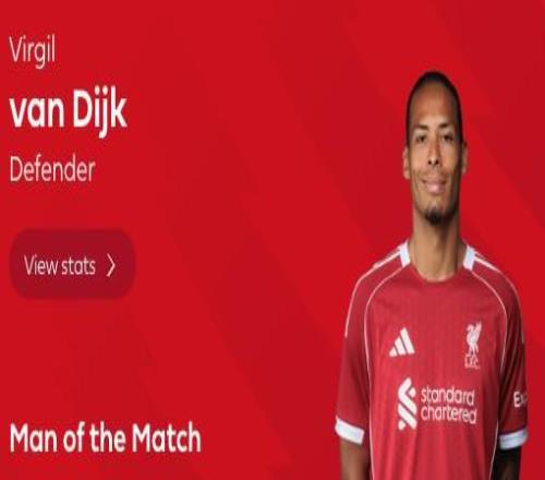 最終經(jīng)過英超官網(wǎng)球迷投票,范戴克以68%的得票率當選全場最佳球員。