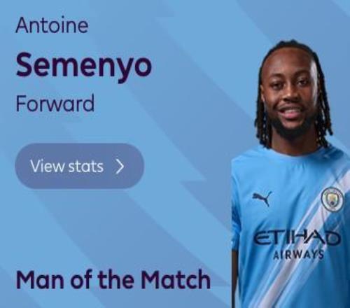 英超第26輪,曼城主場(chǎng)3-0大勝富勒姆,此役傳射建功的塞門約當(dāng)選全場(chǎng)最佳球員。