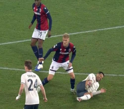 本場(chǎng)比賽第45分鐘,佩德羅在與博洛尼亞中場(chǎng)延斯-厄德高拼搶之后痛苦倒地,最終在隊(duì)醫(yī)的攙扶下退場(chǎng),強(qiáng)烈的疼痛感甚至讓這位久經(jīng)沙場(chǎng)的老將當(dāng)場(chǎng)落淚。