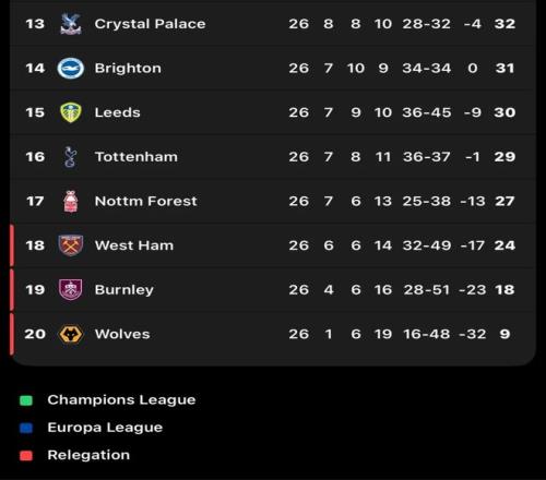 本賽季,英超的保級(jí)形勢(shì)一度非常明朗。狼隊(duì)、伯恩利和西漢姆聯(lián)三支球隊(duì)長(zhǎng)期排名聯(lián)賽墊底,他們被視為最熱門的三支降級(jí)球隊(duì)。但在近期,西漢姆聯(lián)突然爆發(fā),他們?cè)诮?輪比賽中狂攬10個(gè)積分,如今以24分排名聯(lián)賽第18位,僅落后第17名的諾丁漢森林3分,而排名第16的熱刺則只領(lǐng)先降級(jí)區(qū)5分。一時(shí)間,英超的保級(jí)形勢(shì)驟變,由之前的3隊(duì)鐵定降級(jí)變成了5隊(duì)混戰(zhàn)。在英超,保級(jí)成功意味著超過(guò)1.7億英鎊的價(jià)值。在這場(chǎng)巨額財(cái)務(wù)的生死戰(zhàn)中,俱樂(lè)部老板們顯得越來(lái)越?jīng)]有耐心。