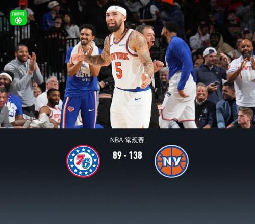 北京時間2月12日NBA 常規賽,費城76人對陣紐約尼克斯。半場76人42-72尼克斯,最終76人89-138尼克斯。費城76人馬克西32分2板2助,VJ-埃奇庫姆14分4板2助;紐約尼克斯阿爾瓦拉多26分3板4助,米卡爾-布里奇斯22分5板6助。