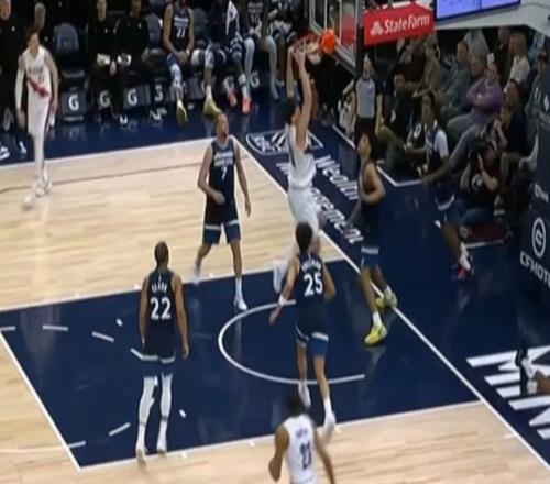 接下來的一個進攻回合,楊瀚森的隊友持球突破上籃,但是沒有命中,此時楊瀚森跟進完成了補扣,還是很提振士氣的。全場比賽,楊瀚森就打了4分47秒,1投1中拿到了2分1籃板1搶斷的數據,開拓者隊以109比133慘敗給了森林狼隊,目前以26勝29負排名西部第10,還是有季后賽的機會。