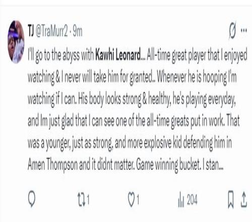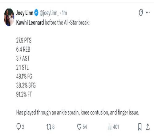 NBA記者Khalil Zaabri賽后寫道:卡哇伊打出了職業(yè)生涯最高光的一個(gè)賽季,但快船管理層那些蠢材卻送走了多位核心球員,這簡直太荒唐了。