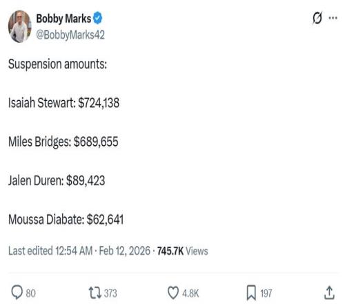 迪亞巴特更是發布長文向教練組、工作人員、管理層、隊友以及NBA球迷進行了道歉,保證自己不會再如此失控。