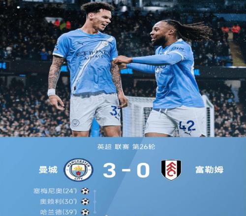 英超第26輪曼城坐鎮(zhèn)主場以3-0橫掃富勒姆,將與榜首阿森納的分差縮小至3分,隨后槍手爆冷失分,曼城就有可能取而代之。此役,上半場塞梅尼奧傳射建功,奧賴?yán)⒐m德先后破門,藍(lán)月亮早早鎖定勝局。下半場富勒姆雖竭力反撲卻難破曼城防御的銅墻鐵壁,最終瓜帥的球隊贏球的同時將兩項英超歷史紀(jì)錄收入囊中。