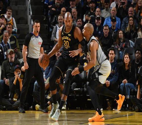 穆迪跳投打進,隨后2次外線出手打鐵。??怂罐Z進三分球,霍福德上籃得分,科內特空接打進,科爾請求暫停。霍福德低位強攻命中,凱爾登約翰遜回敬遠投,桑德斯壓哨勾手取分。巴恩斯上籃得手,科內特大帽斯潘塞,佩頓空接打進,馬刺連續外線打鐵,佩頓轟進三分球。??怂乖谥羞h距離獨得5分為馬刺止血,斯潘塞、波杰姆斯基相繼沖擊籃下得手,福克斯跳投再次取分。首節打完,勇士以38比31領先,??怂箚喂?2分。