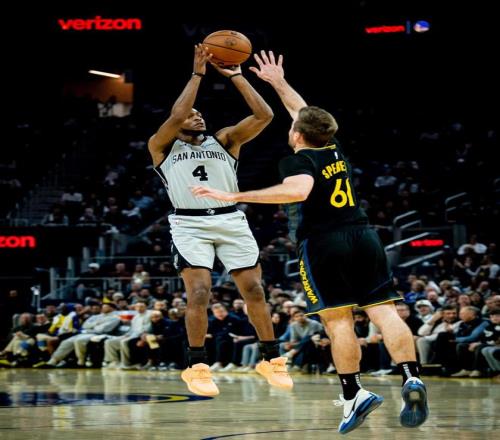 末節決戰,文班亞馬遠投不進,勇士連續單打不中,巴恩斯暴扣,福克斯搶斷,凱爾登約翰遜2罰全中。文班亞馬制造了格林的犯規,科爾挑戰判罰失敗,文班亞馬2罰1中。尚帕尼封蓋穆迪的遠投,穆迪強勢上籃得分還以顏色,文班亞馬暴扣。斯潘塞被文班亞馬封蓋,哈珀反擊上籃得手,波杰姆斯基外線打鐵,文班亞馬轟進三分球,馬刺轟出12比2的攻勢,將分差擴大至兩位數。