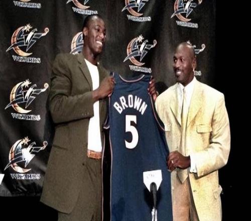 最終,布朗做出了決定,他選擇了參加2001年的NBA選秀。而且在試訓中,他的發揮非常搶眼,尤其是在奇才隊的單獨試訓中,他得到了時任球隊股東邁克爾·喬丹的肯定,所以最終手握狀元簽的奇才隊,在喬丹的力排眾議之下,沒有選擇保羅·加索爾、泰森·錢德勒等人,而是將布朗欽定為了狀元。自此,布朗成為了NBA歷史第一個高中生狀元,同時也是歷史最年輕的狀元。